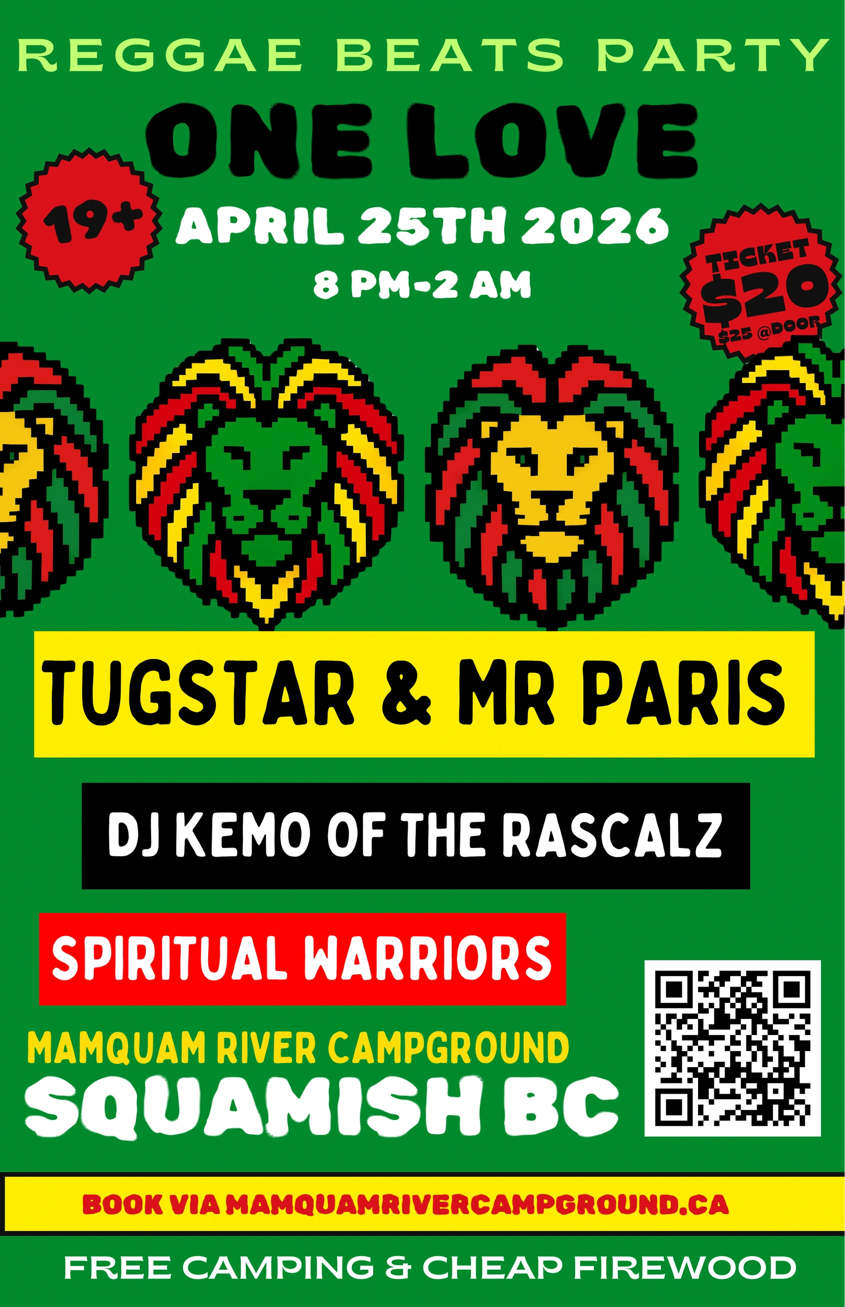 8 pm - 2 am. Join us for an evening of reggae music, dancing and vibes April 25, 2026!